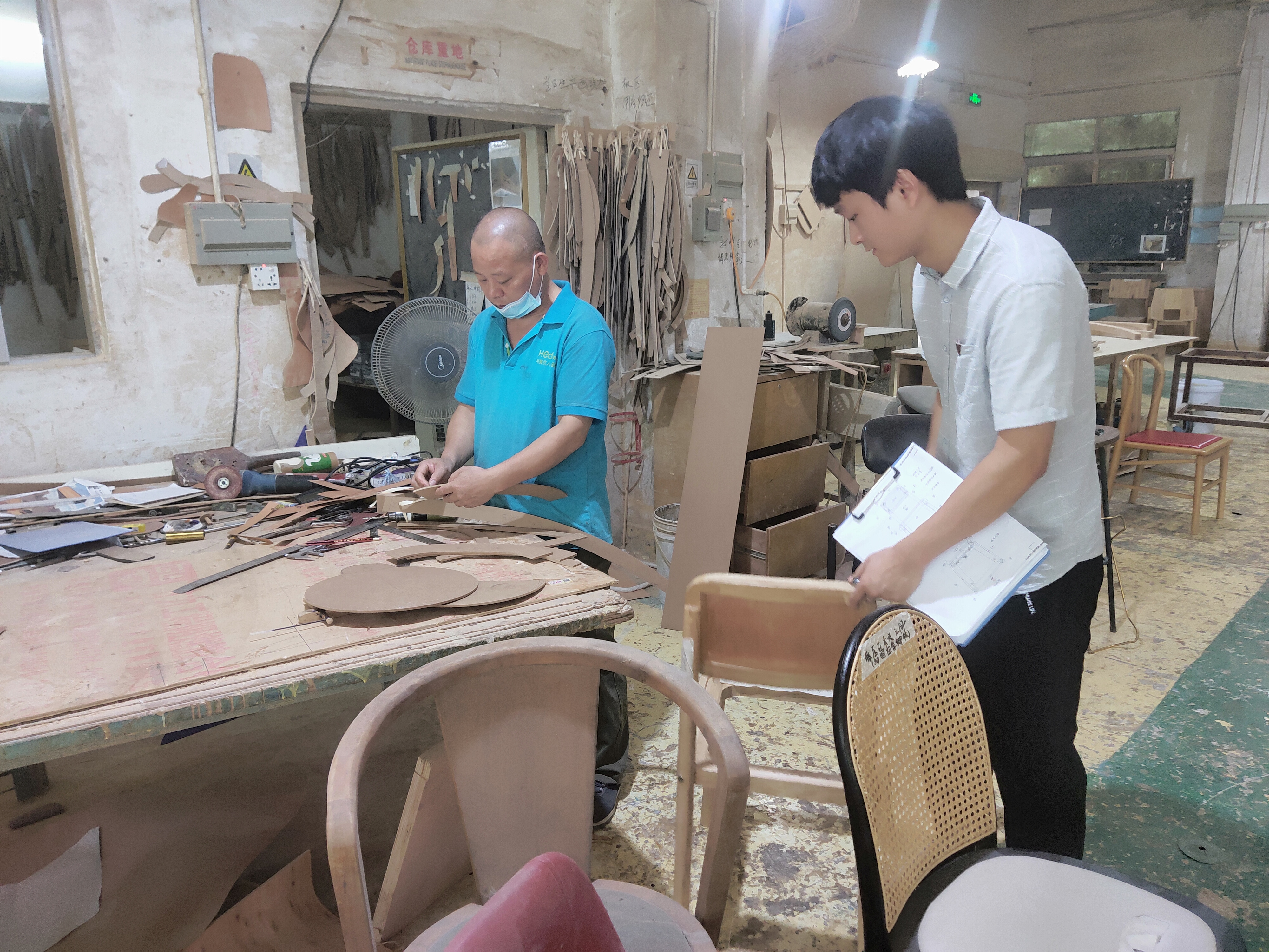 工厂里的刘师傅介绍到,我见过很多设计师,但他是我印象最深刻的一位,不是我和他认识的时间长,而是他的确和别人有些不一样,其它设计师都是把产品图纸给到我这边,之后就没看到身影了,也有设计师一段时间来一趟看看制作进度,这样做的结果就是有些方面,我总是要揣摩,但我又不能总是去打扰设计师,所以做出来的产品,总是和效果图缺了点什么,但这我又不能控制。然而彭科他会告诉我哪些设计到哪一步,注意事项是什么,每一道工序最好用什么处理比较好,他就是这样一个人,仿佛他就是一个雕刻师,将家具当作艺术品来雕琢,对细节的把握让我都感到不可思议。